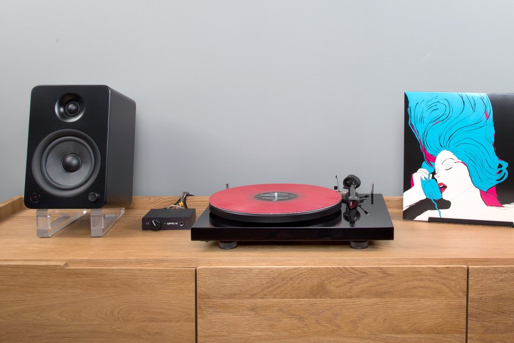 - «Чтобы изменить скорость на 33 или 45 об / мин в модели Debut Carbon (DC), вам необходимо всего лишь поднять диск и переставить пассик в другую канавку шкива двигателя. Это несложная операция, но в результате скорость вращения диска поддерживается более стабильно, чем у дешевых проигрывателей с электронным переключением».