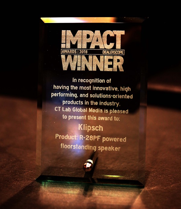 Новые акустические системы Klipsch R-28PF получили награду Impact, которую ежегодно вручает различным моделям AV-техники профессиональное жюри DealerScopе. В отличие от других престижных наград и премий, присуждаемых журналистами и экспертами специализированных изданий, данный рейтинг составляется дилерами, оценивающими, в свою очередь, отзывы покупателей на ту или иную Hi-Fi-технику. Награду Impact в 2018 году присудили активным напольным колонкам Klipsch R-28PF за «самую инновационную конструкцию, качественный звук и способность эффективно решать требуемую задачу».