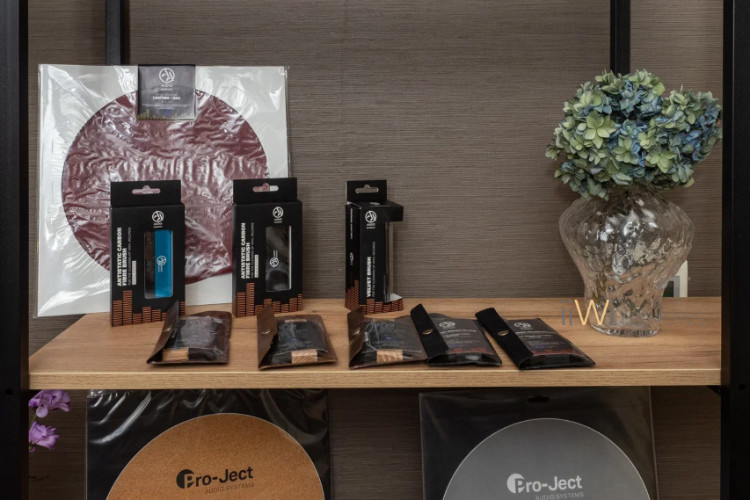 Проигрыватель Pro-Ject Debut EVO 2 в элегантном винном цвете - долгожданное переиздание культовой линейки бренда, а также множество аксессуаров для винила от компаний Audio Anatomy и Pro-Ject. Новые кабели и готовые наборы для апгрейда вертушек в различных вариантах тоже были представлены на полках нашей уютной комнаты.