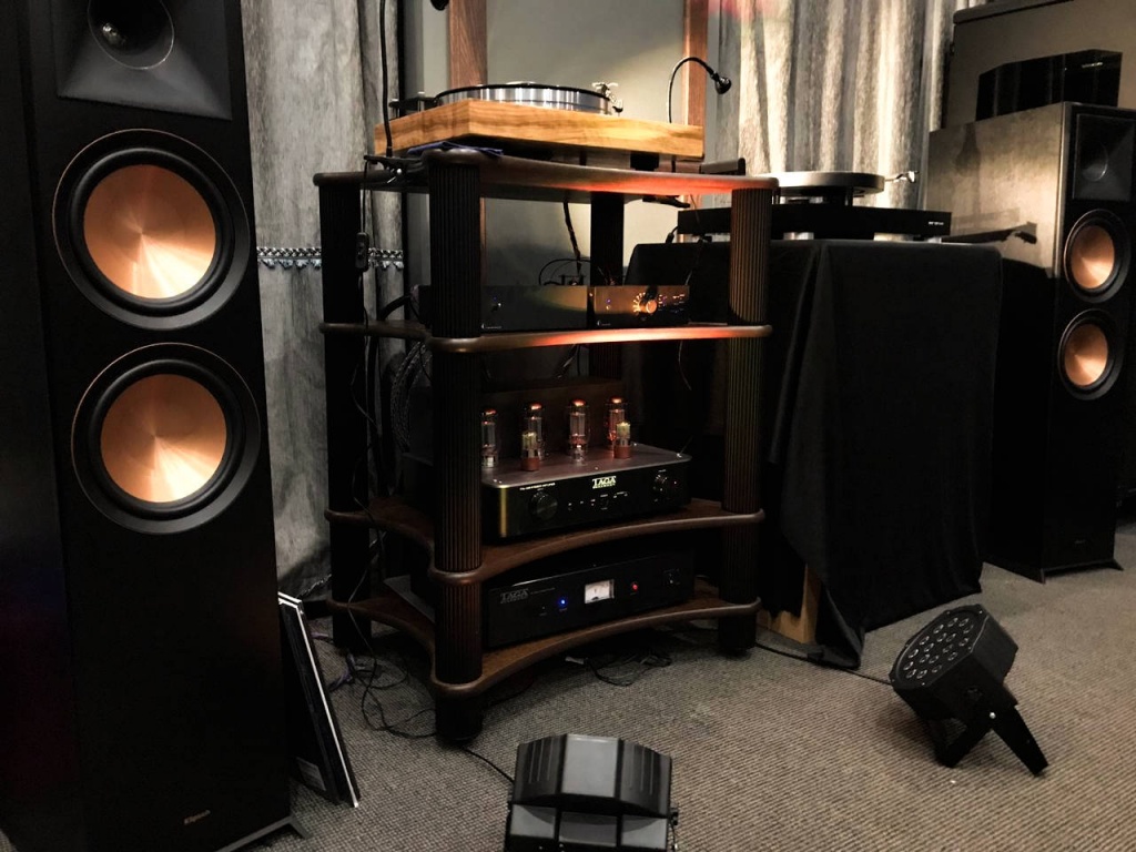 Усилитель в системе также был необычный – интегральный ламповый аппарат TTA-1000 польской компании TAGA Harmony. Стоит он на день выставки 140 000 рублей, что было в несколько раз меньше, чем цена большинства аналогичных усилителей на стендах других участников выставки, TTA-1000 развивал 2 х 60 Вт полновесного лампового звука и легко раскачивал крупные напольные колонки Klipsch RP-8000F. Эта акустика – еще один интересный компонент в системе Overton. Колонки RP-8000F входят в обновленную серию Reference Premiere и оснащены новыми рупорами Tractrix, а также двумя 8-дюймовыми низкочастотными динамиками Cerametallic. Такое сочетание обеспечило мощный, насыщенный и в то же время сбалансированный и детальный звук. Это наглядно доказало, что колонки Klipsch в правильной системе отлично подходят для воспроизведения музыки любых жанров.