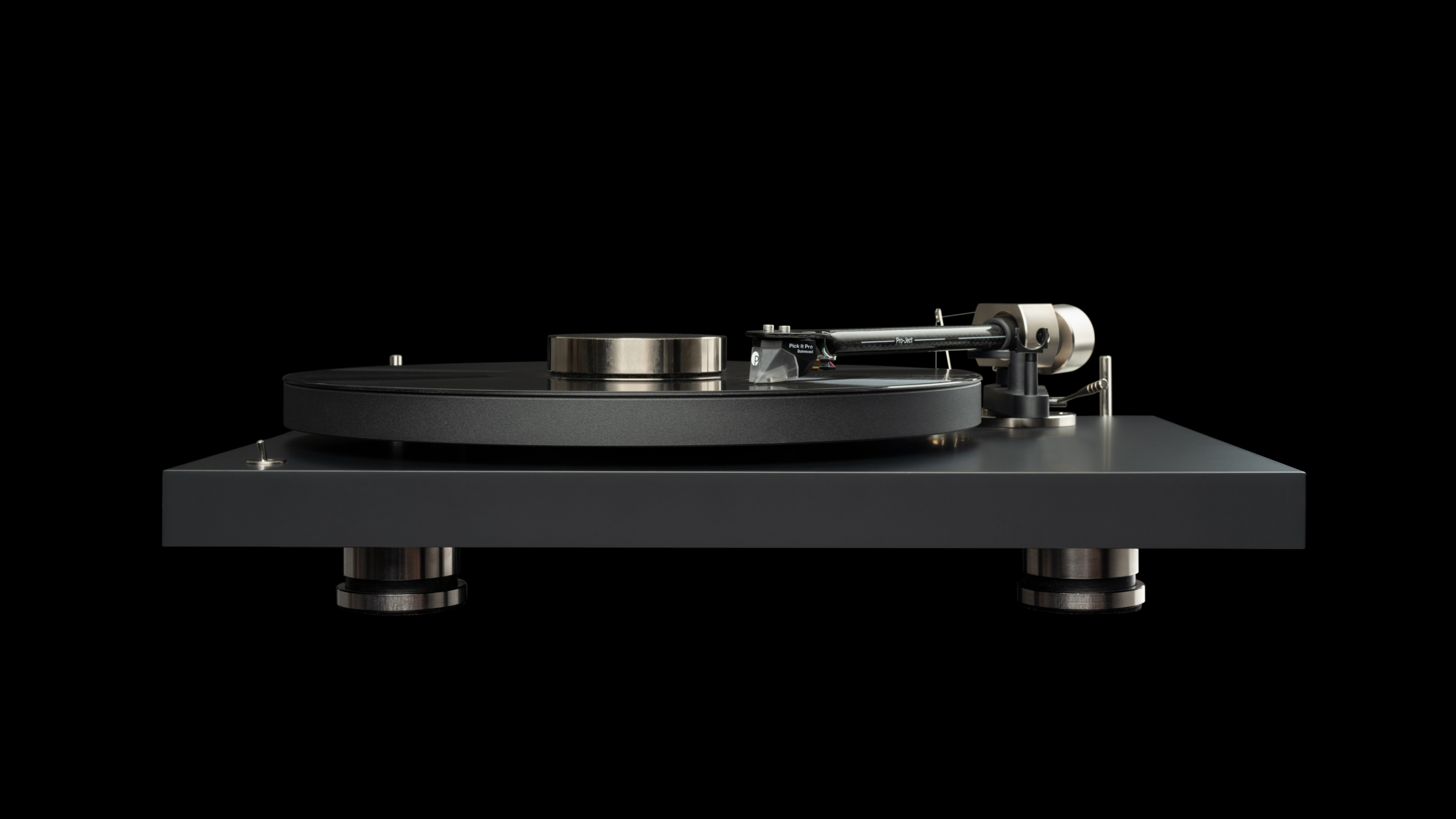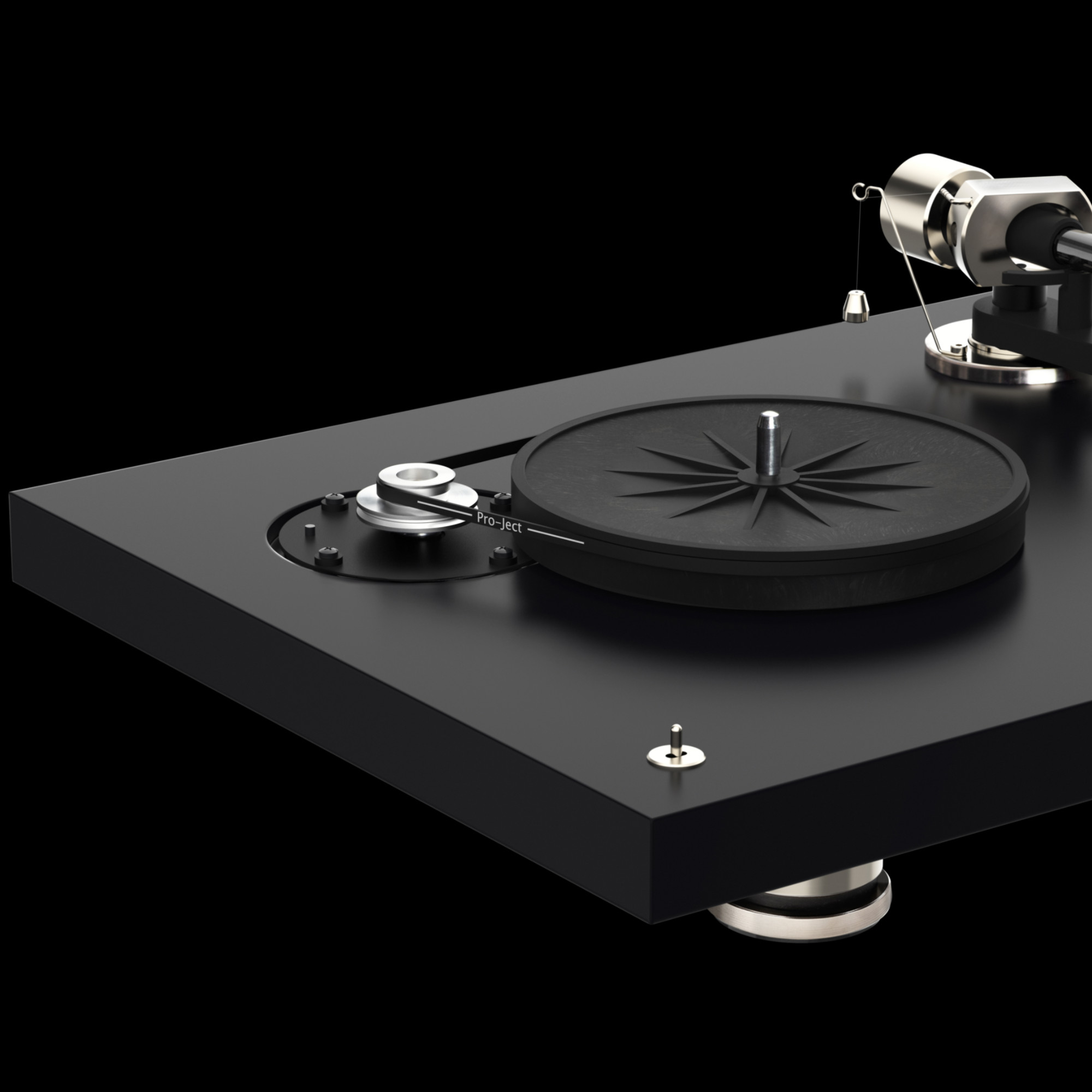 Pro-Ject Debut PRO B (Pick it PRO B) легко выровнять на поверхности, так как проигрыватель оснащают регулируемыми по высоте металлическими опорами.
