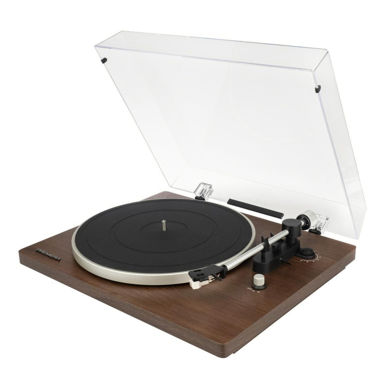 В модели Premiera ECO One применяют надежный пассиковый привод от малошумящего серводвигателя. Весь механизм скрыт под опорным диском, что делает внешний вид проигрывателя лаконичным. Скорость вращения пластинки 33 ⅓ или 45 оборотов в минуту выбирается нажатием кнопки.