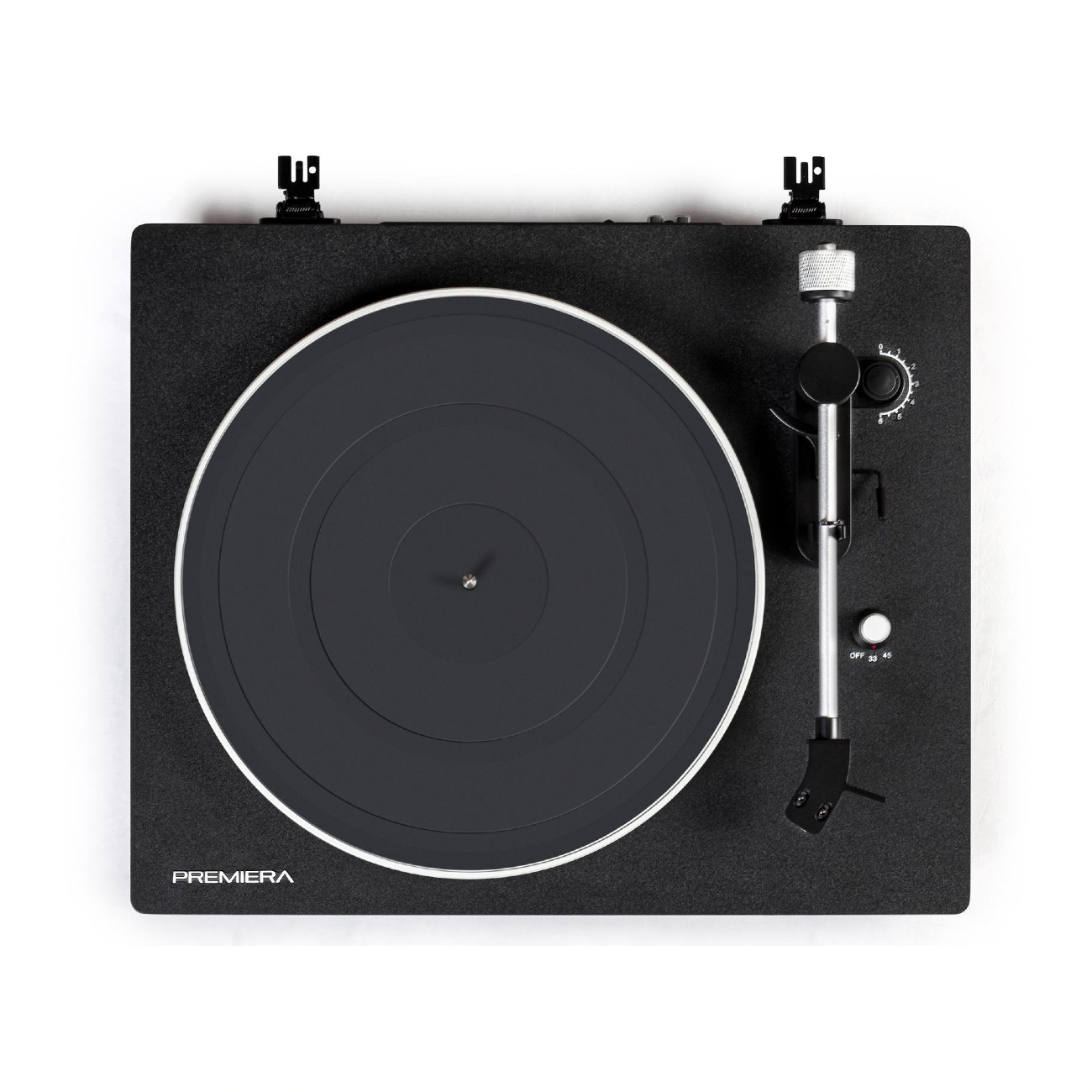 Premiera ECO One оснащают литым опорным диском из алюминия. Обычно такие диски применяются на моделях более высокой стоимости. За счет значительного веса диск вращается плавно, а пластинка на нем защищена от внешних механических воздействий. Проигрыватель комплектуют демпфирующим матом.